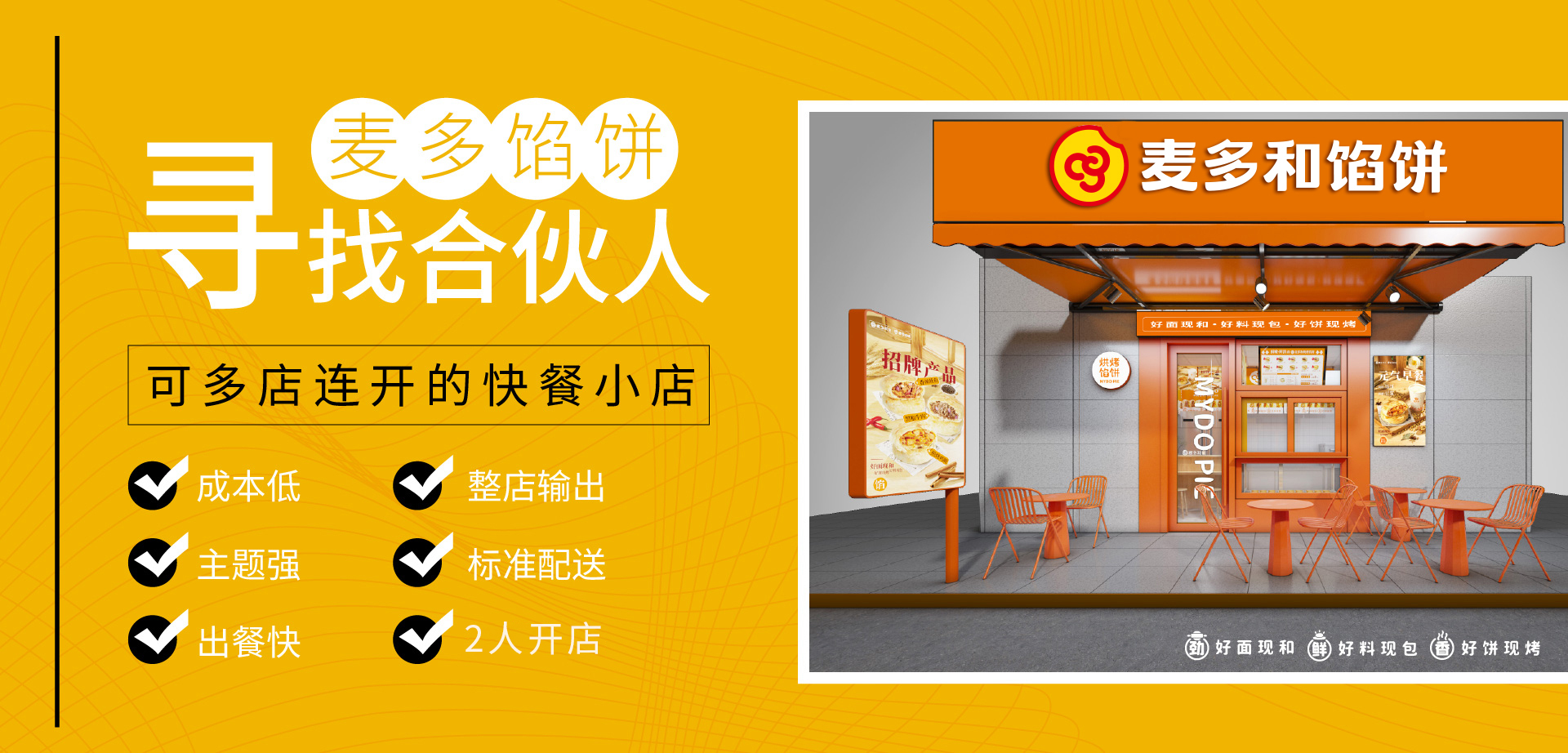 麥多和品牌定位,以高品質的產品、大眾化的價格、親切友善的服務、便利的連鎖店鋪,為顧客精心打造放心的美味,主打產品麥多餡餅一口酥嫩,一口鮮濃,美味旋律均來自世界各地的健康食材,用創意的心和精湛的工藝,將美味產品匯聚在您的舌尖。